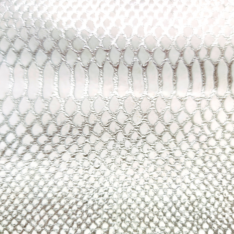 Qualité : cuir pleine fleur, souple, Imprimé serpent Gris Argent sur Fond Blanc